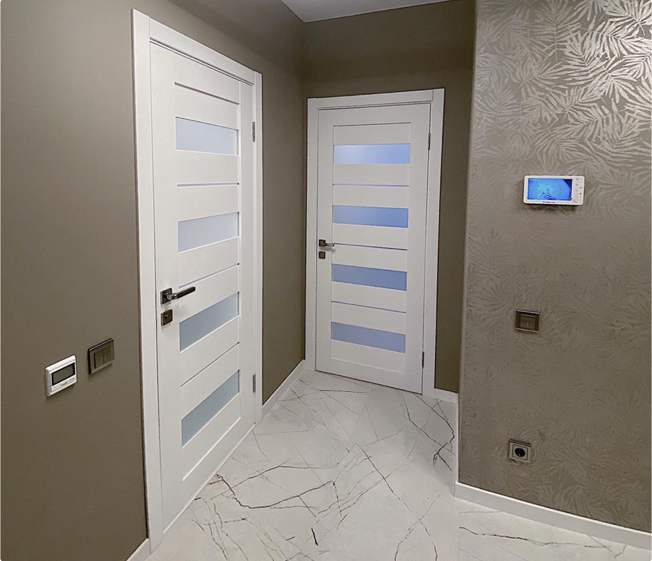Для остекления царговых дверей используется сатинат с витражом или матировкой, лакобель и прозрачное стекло. А для коллекций Стиль, Сириус и Престиж – прочный многослойный триплекс, в том числе и зеркальный. Мы также осуществляем на основе царговых дверей изготовление межкомнатных перегородок.